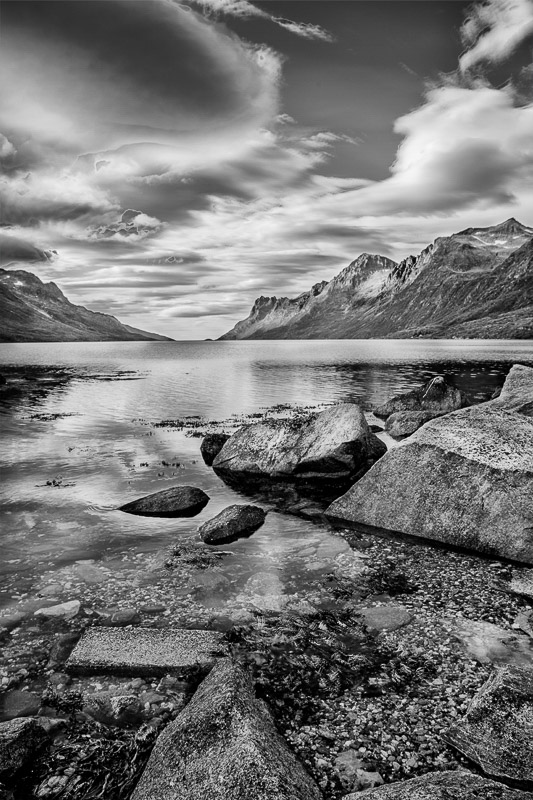 Fjord and Rocks, Black and White - NOR17-1160BW